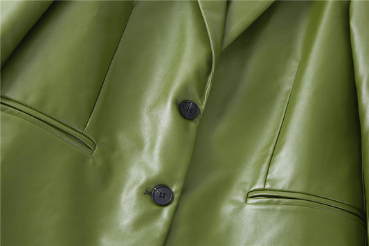 Ensemble en simili cuir Vivatelle “Émeraude” – blazer & pantalo