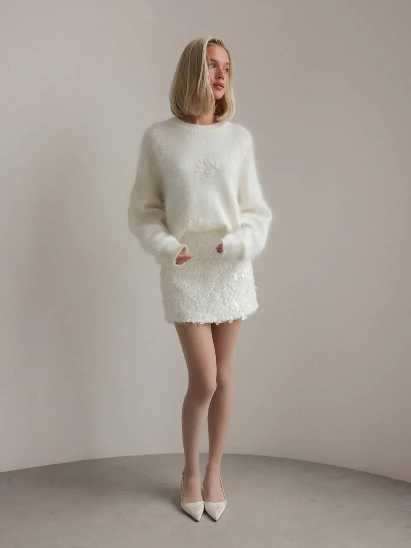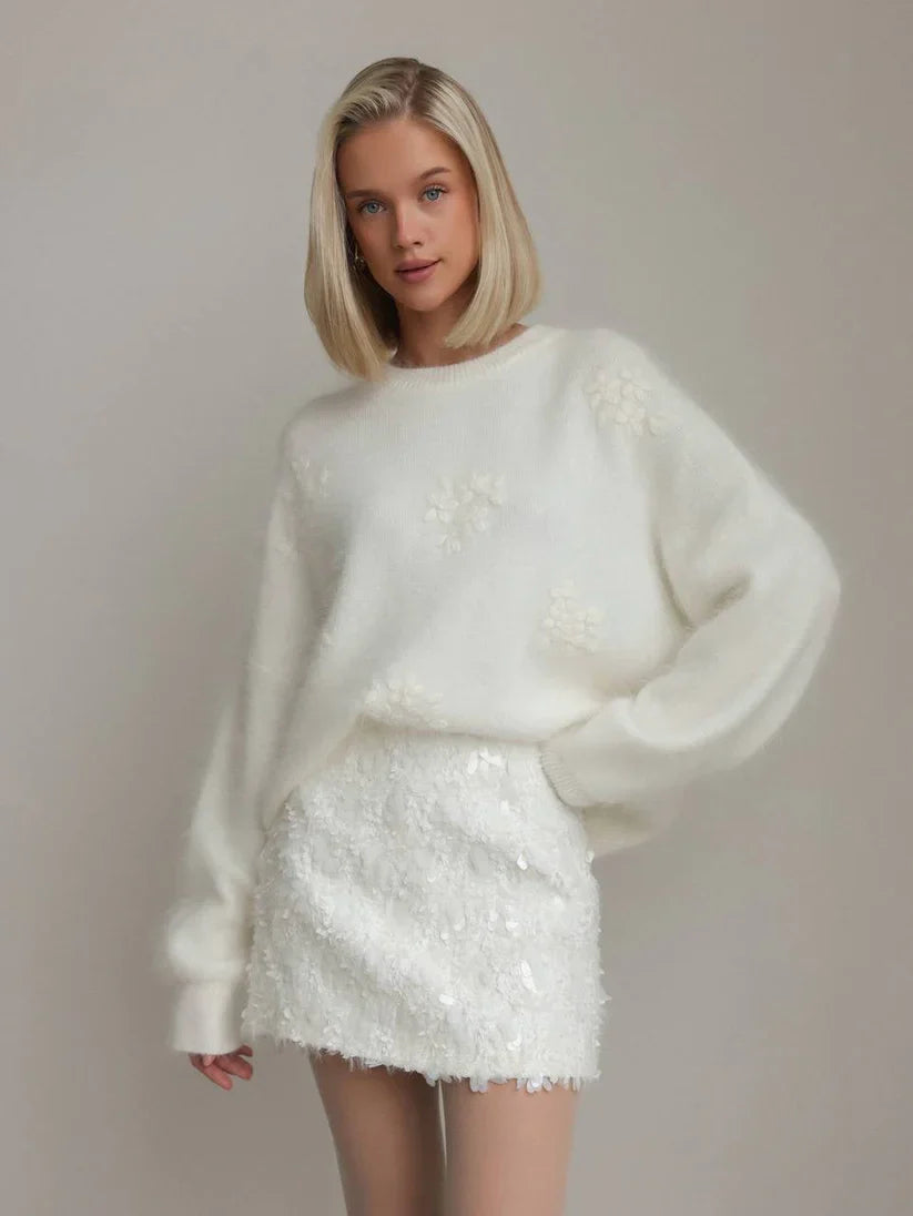 Craquez pour ce pull sophistiqué et ultra-doux, orné de motifs floraux délicats en relief. Avec son design épuré et sa texture luxueuse, il devient rapidement l’allié indispensable de vos journées fraîches.